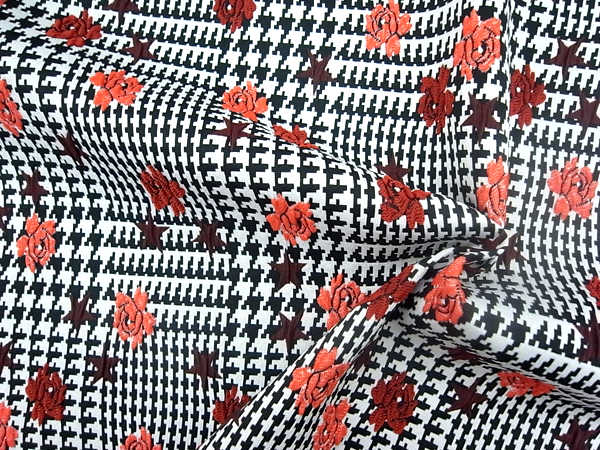 豪華な刺繍と花柄の可愛らしさを兼ね備えた生地です。長いシーズンにお召しいただける便利な一着になるでしょう。
