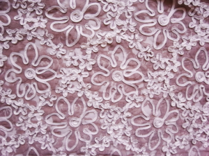 リボンヤーンで花柄が描かれたエレガントでありながら可愛らしいレースです。