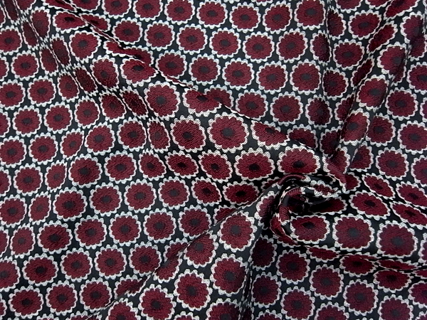 エンジ色の落ち着いた色使いで花柄ジャガード織が施されています。