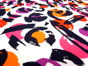 本日、ご紹介しますのはピケ地に芸術的なペイントタッチでプリントを施されています。