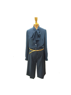 紺のシルクシフォンのボータイブラウスと合わせるとシックな装いになります。