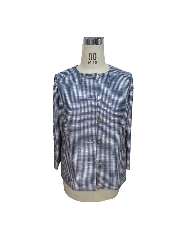 先日、作成中ということでご紹介したノーカラーのブラウスが仕立て上がりました。